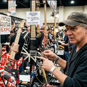 Eddie Van Halen was browsing a vintage guitar show at the Pasadena Convention Center, looking at rare instruments and talking with dealers about…