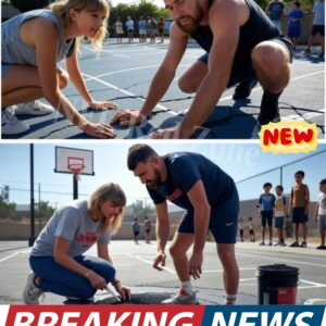 The town’s only basketball court was cracked and forgotten — until Taylor Swift and Travis Kelce drove in with buckets of asphalt and…
