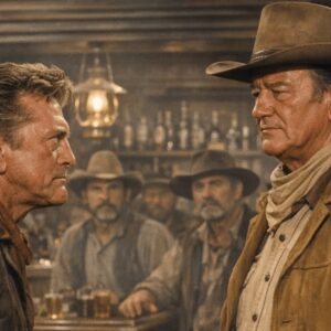 The glass exploded against the bar, missing Kirk Douglas’s head by inches. John Wayne stood frozen 10 ft away, arm still extended from…