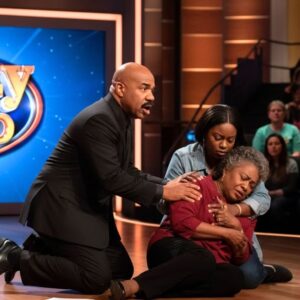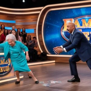 The cards scattered across the Family Feud stage floor like confetti, but nobody was celebrating. Steve Harvey’s hands were empty, his mouth…