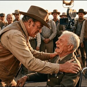 John Wayne was mid-draw in a gunfight scene when he saw the man in the wheelchair behind the set barriers and he…