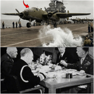 The waves in the North Pacific were 30 ft high. They crashed over the flight deck of the USS Hornet, soaking the aircraft…
