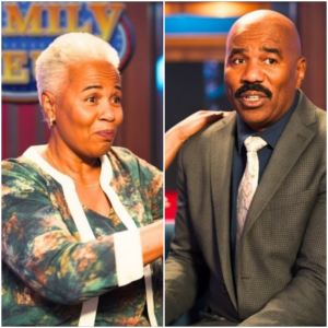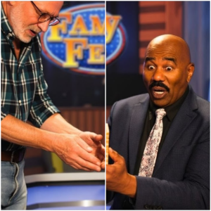 The camera stopped rolling, but nobody moved. Steve Harvey stood frozen in the center of the Family Feud stage, his microphone hanging loosely…