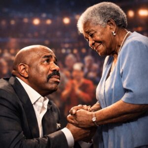Steve Harvey stopped mid joke. His hand froze in the air. The entire studio fell into a silence so thick you could hear…