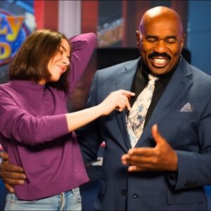 Steve Harvey was in the middle of his signature laugh, head thrown back, hand on his chest, when something made him stop cold.…