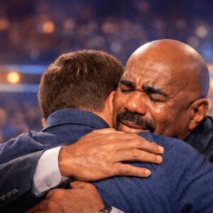 The studio lights are blinding. The audience is applauding. The theme music of Family Feud is fading out. And Steve Harvey walks towards…