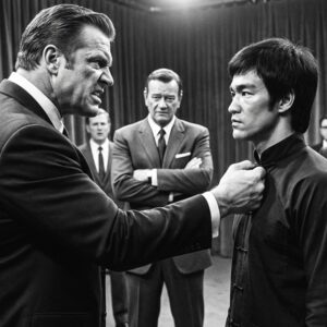 The door to stage 9 opens. Bruce Lee walks in carrying a gym bag. He’s wearing black pants and a gray shirt. He’s…