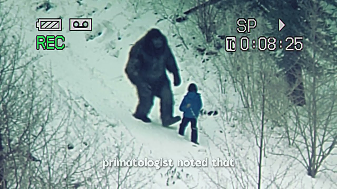 The trail camera footage shows everything. A massive dark figure moving through the Oregon wilderness, walking slowly through the snow alongside a small child in a blue winter coat.