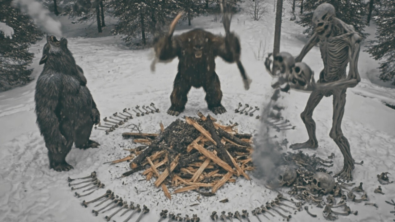 By 3 a.m., it stopped. In the morning, I found their tracks all around the cabin. In front of the door, they left an elk skull, upright in the snow, surrounded by smaller bones arranged in a perfect circle. A message. A warning.
