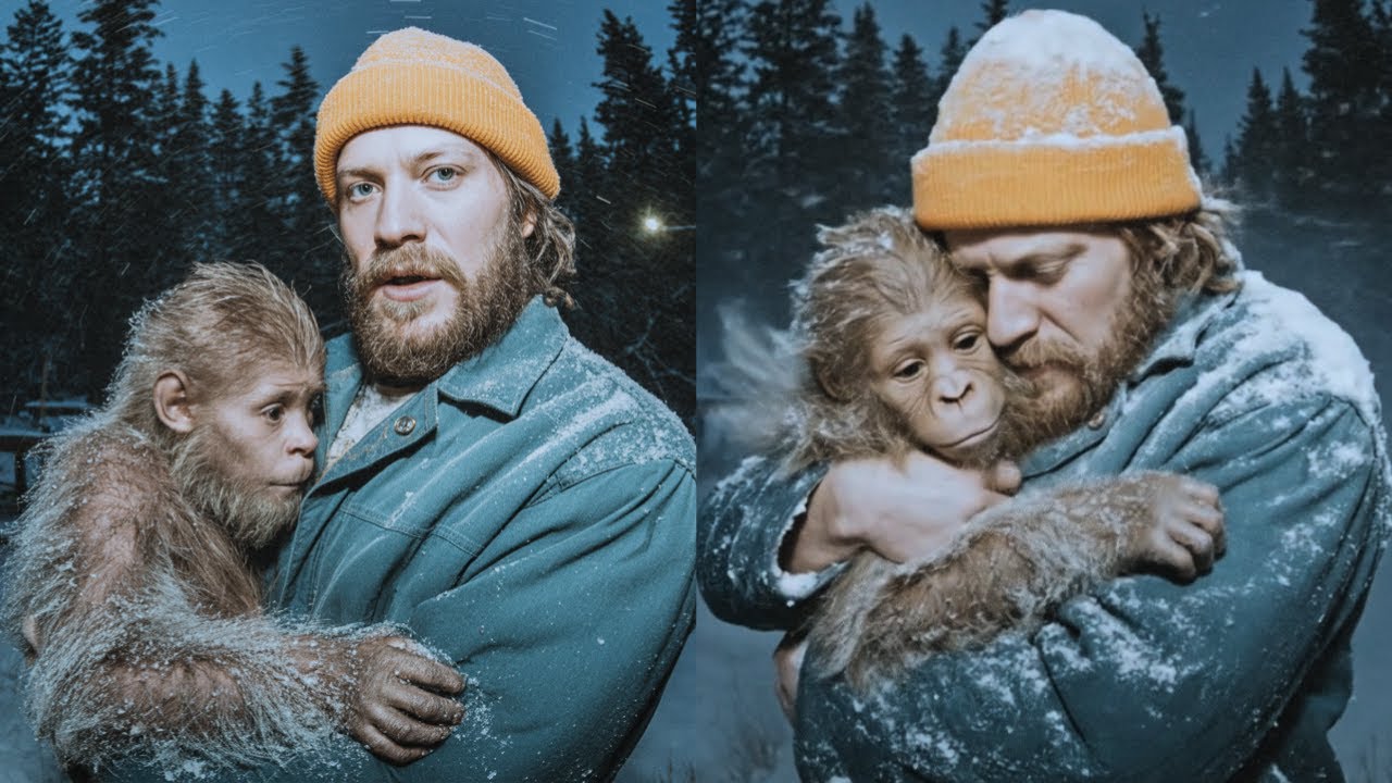 There, curled in the corner, was a creature—small, soaked, shivering. At first, I thought it was a bear cub, but the eyes were all wrong: huge, dark, and filled with something that looked an awful lot like fear and hope. Its hands—yes, hands—were covered in fine, dark hair, and it clutched its knees to its chest, rocking back and forth. When my flashlight beam hit its face, it whimpered louder, but didn’t try to run.