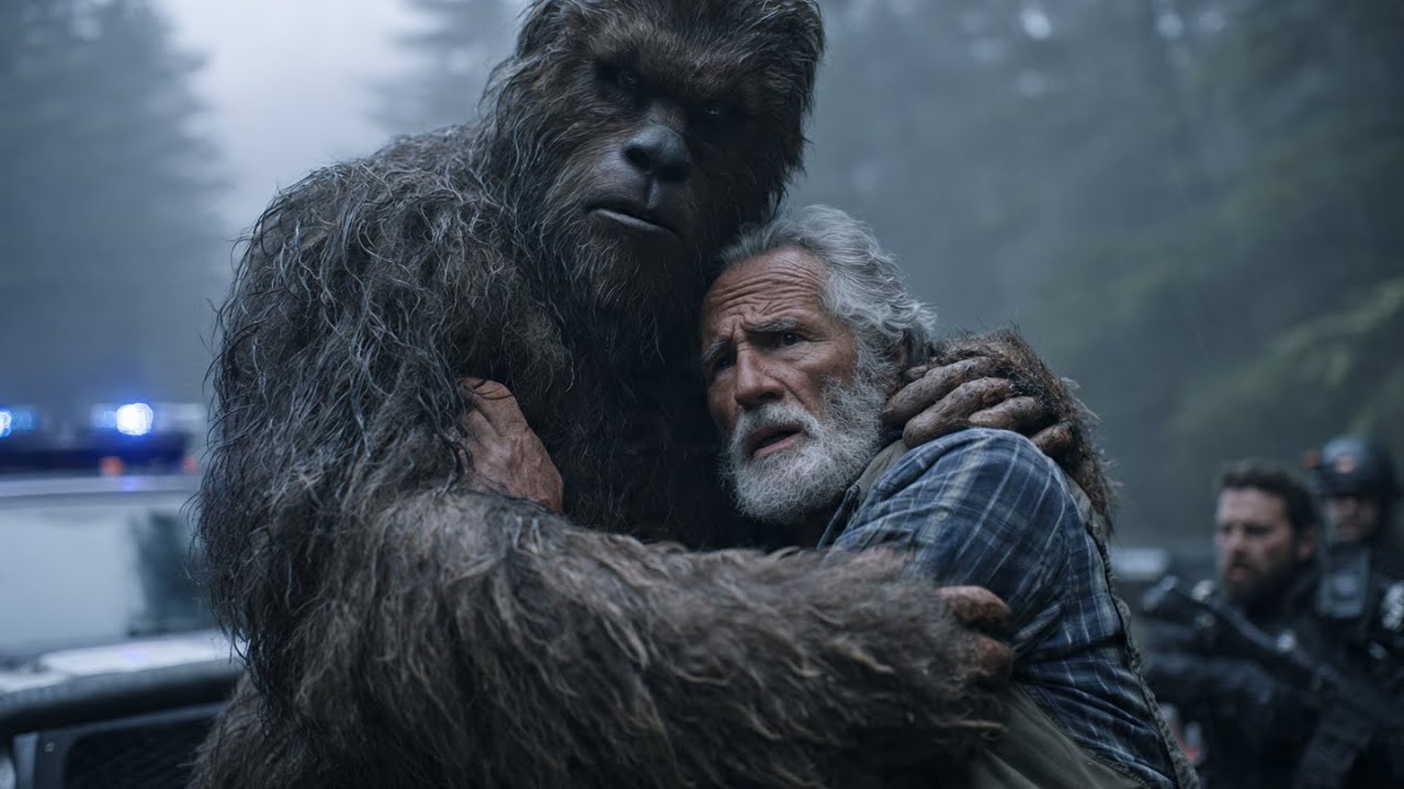 He lay wedged against a fallen Douglas fir, enormous, nine feet of dark hair matted with mud and crimson. His shoulders were too broad, his arms too long, his face wrong in a way that made my mind scramble. Almost human, but heavy-browed, wide-nosed, the jaw built for power. His eyes were amber and unmistakably aware, fixed on me with terror. The word “Bigfoot” floated up like a stupid joke from tabloids, but nothing about him was funny. He tried to rise and failed, and that’s when I saw the wound: a high-caliber gunshot torn through chest and shoulder. He wasn’t attacking me. He was waiting for me to finish him, one huge trembling hand lifted not as a threat but as a shield.