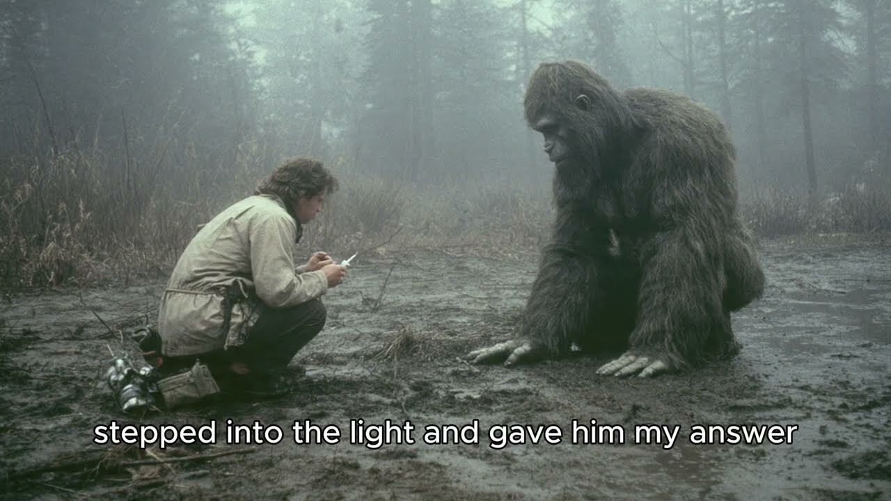 Out he stepped—eight and a half feet of life that finally fit the world around him. Against glaciers and endless timber, he looked less like a monster and more like a missing piece returned. He breathed in elk and pine resin and ozone, and his posture changed as if his bones remembered something my barn had tried to erase. When he turned back to me, I saw gratitude and sorrow braided together in his amber eyes.