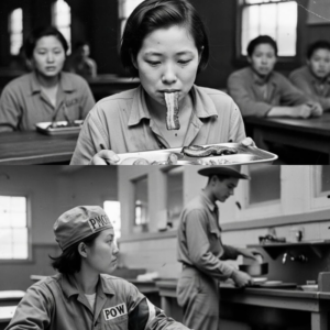 The women entered the mess hall, their eyes darting across the room. The scene was unfamiliar but oddly comforting. The guards, once feared as ruthless enemies, were now simply men cooking breakfast. A heavy, unfamiliar tension pulled at their stomachs—not from hunger, but from disbelief. The warm, familiar scent of bacon swirled in the air, sparking memories they had buried deep in the recesses of their minds.