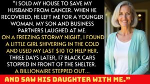 I sold my home to save my husband’s life. When he recovered, he left me for a woman young enough to be his granddaughter. My own son told me I was being dramatic and needed to move on. And on the coldest night of my life, with only a thin jacket and empty stomach, and seven dollars left in my pocket, I found a little girl curled up behind a trash bin, soaked in rain and terror. Helping her that night changed the entire direction of my life.
