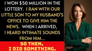 I won $50 million. I ran to my husband’s office with our son. When I arrived, I heard some noises…