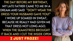 Her father had been standing in the doorway of her room—not the frail man she remembered from his final months, but the strong version of him from years ago. He wore the warm brown sweater he always favored in early winter, and his eyes held the same steady seriousness that had guided her through childhood. His voice was calm, low, and unmistakably clear as he said, “Caroline, do not wear the dress Thomas gave you. Do you hear me? Do not wear that dress.”