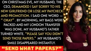 On Christmas Eve, the world outside was a winter wonderland, but inside the sleek office, tension hung in the air like a thick fog. Eliza Warren sat across from her husband, Daniel, the CEO of their biotech firm. The soft glow of the desk lamp illuminated the formal personnel notice that lay between them, a stark reminder of the power dynamics at play.