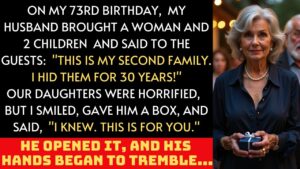 On my birthday, my husband brought a family he had hidden 30 years — I smiled and gave him a box…