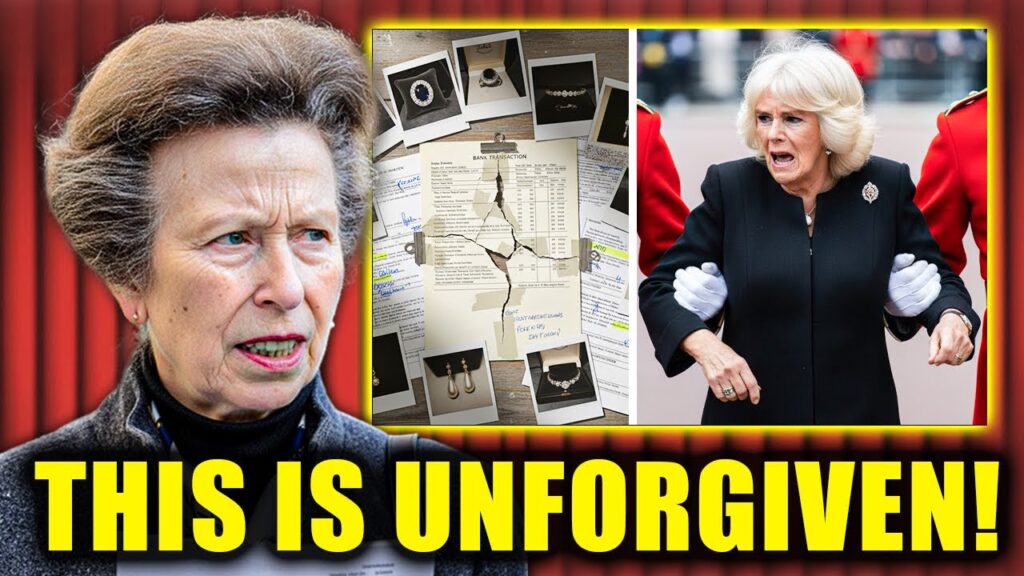 Princess Anne, known for her stoic demeanor and unwavering loyalty, sensed something amiss. A routine visit to Camilla’s private office revealed chaos: crumpled invoices, misplaced royal seals, and cryptic notes hinting at a clandestine channel abroad. Among the debris, Anne discovered damning evidence—auction house receipts from Zurich, describing the sale of historic gowns, handwritten letters to Prime Ministers, and a diamond and emerald brooch from Elizabeth’s personal collection.