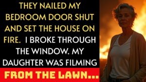 She stood near the hedge beneath the porch light. Phone raised, camera recording, not calling my name, not running toward me, just watching, steady breathing, expression unreadable. And in that moment, I understood the fire behind me was not the real danger. The danger was raised in front of me, wrapped in my blood, holding a camera, waiting for a different outcome than this one.