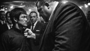 Then, the door opened, and a Hollywood contact walked in with a man who looked like he belonged in a different world. Bruce Lee was 5’7” and weighed barely 135 pounds. To Big Anthony, he looked like a flyweight in a room full of giants.