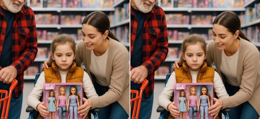 Amidst the bustle, I wandered through the toy section, searching for the perfect gift for my niece. My mind was preoccupied, scanning the shelves for something special, when a subtle movement caught my eye—a small figure in a wheelchair, lingering at the far end of the aisle.