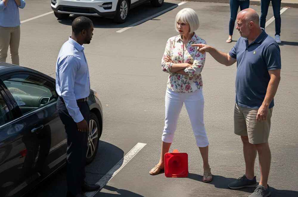 The woman sneered, her voice carrying across the lot. “First come, first served, buddy. That’s how it works.”