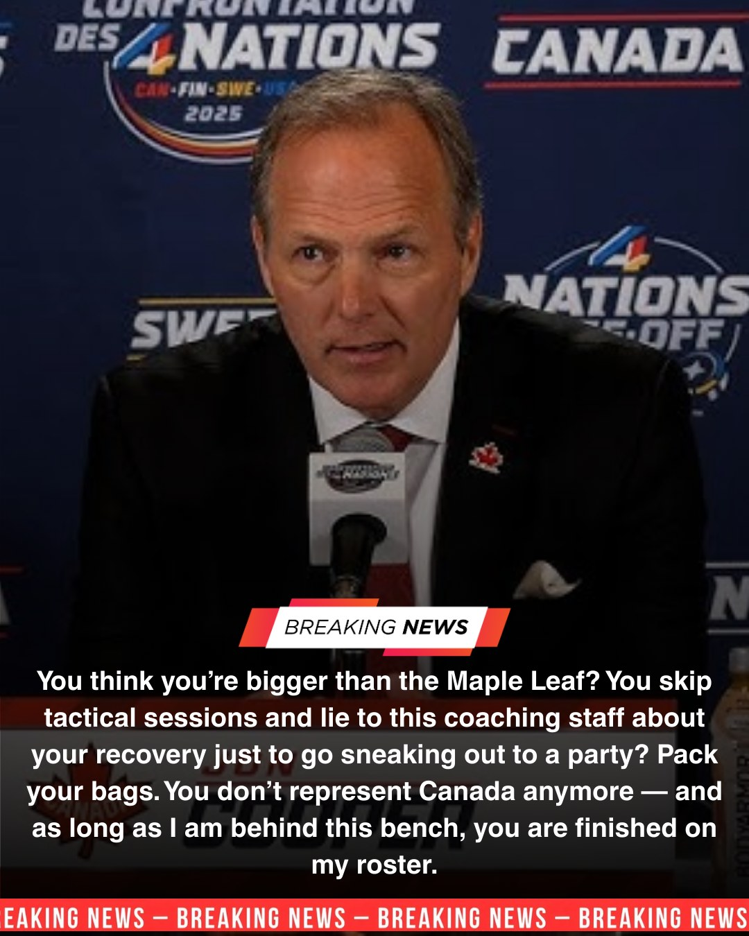 “We are entering the most critical stage of the tournament, and discipline is non-negotiable,” Cooper stated firmly in a post-decision address to the team and media. “If you think you can skip practice and be dishonest about it while representing the Maple Leaf, you’re mistaken. No individual is bigger than this program, and we will move forward with those who respect the jersey.”