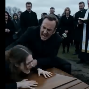 The cemetery had been wrapped in a heavy, respectful silence—the kind that settles over a place where grief is expected and questions are not. Rows of mourners stood dressed in dark colors, their heads bowed, their faces composed into quiet…