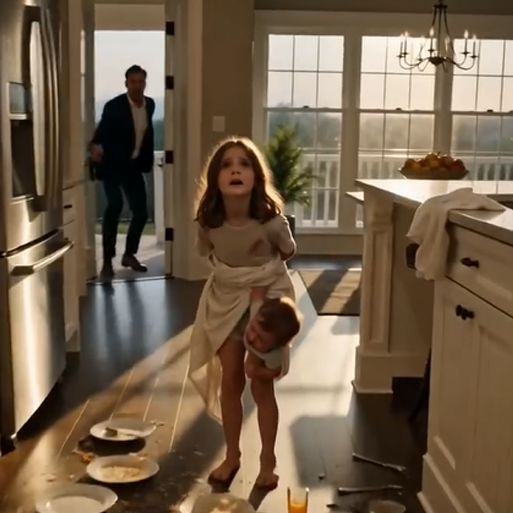 From the staircase, Emma stepped forward, hesitant. “Dad…” she whispered.