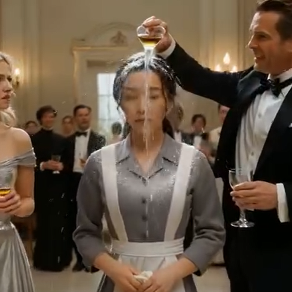 No warning. No hesitation. He tilted it with careless precision, a gesture so casual it bordered on ritual. Gasps rippled instantly as the liquid left the rim and fell toward her—