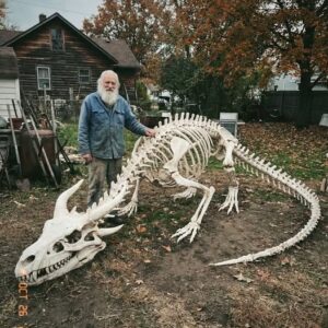 He claims it’s just “autumn decor,” but he’s been building it bone-by-bone since last summer. He says it keeps the deer out of the vegetable garden better than any fence he’s ever used.