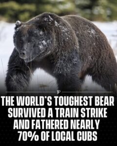 Bear 122, known as “The Boss,” is a dominant grizzly in Banff National Park who survived a train strike near Vermilion Lakes and continued to thrive