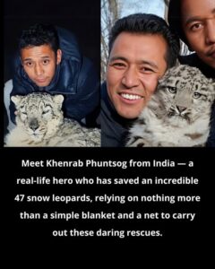 Meet Khenrab Phuntsog from India — a quiet hero who has rescued 47 snow leopards, using nothing but a blanket, a net, and extraordinary courage to save one of the world’s rarest animals.