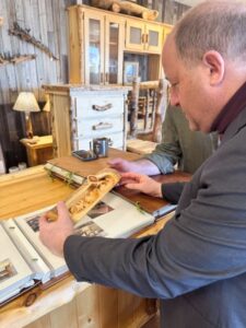 Today I visited Medicine Wolf Log Furniture in Denver. Jon Weekley crafts beautiful beds, tables, and chairs using locally sourced beetle-kill pine.