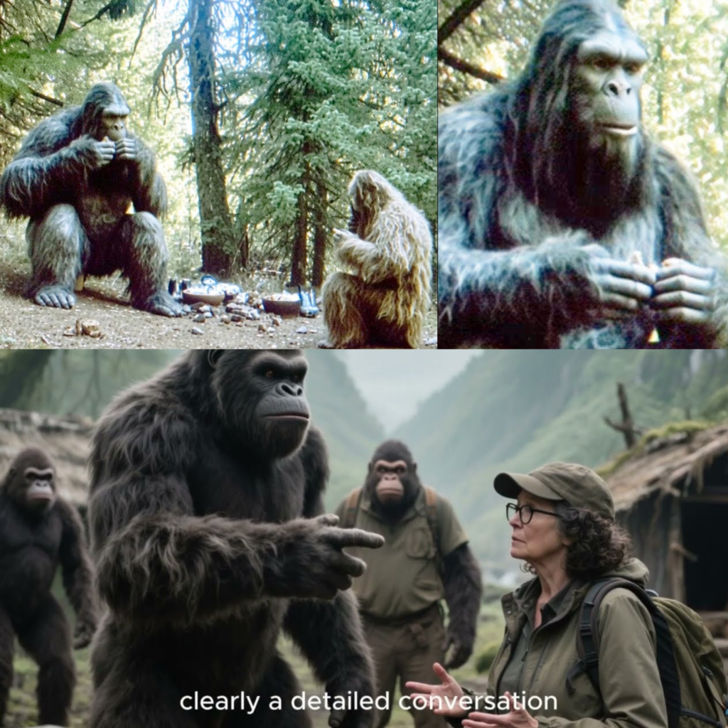 I froze, heart pounding. One of the Bigfoots looked up, locking eyes with me. Instead of aggression, the creature simply gestured—inviting me to join them.