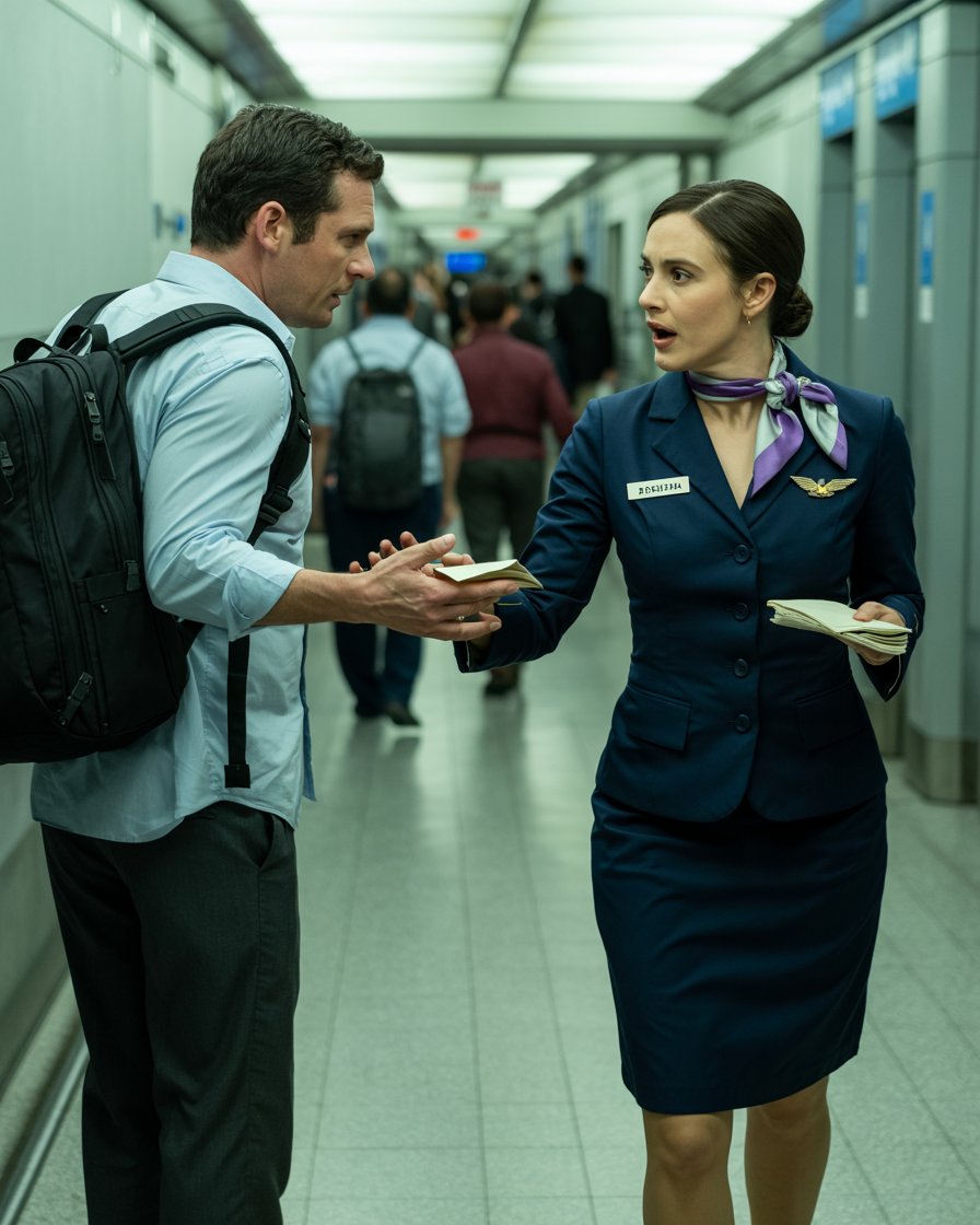 I was halfway down the jet bridge, lost in the usual pre-flight fog, when a flight attendant grabbed my wrist. Her grip was desperate, not the gentle professionalism you expect from someone in uniform. Her name tag said Patricia. Her eyes looked… haunted. Not tired—wrecked.