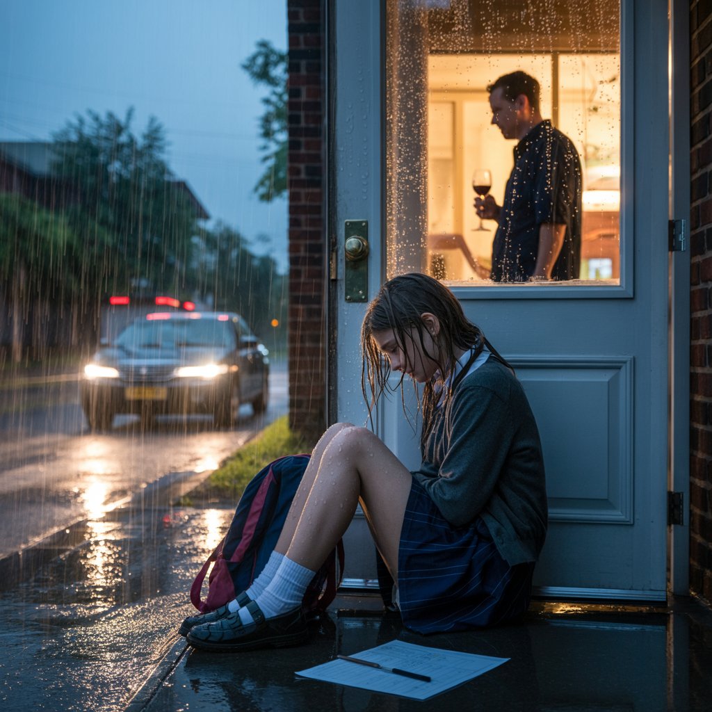 The rain came down in sheets, turning the quiet suburban street into a blur. Eleven-year-old Emily Carter stood on the porch, her backpack soaked through, clutching the silver key her mother had given her. But when she tried to unlock the door, the key didn’t fit. Not even close.