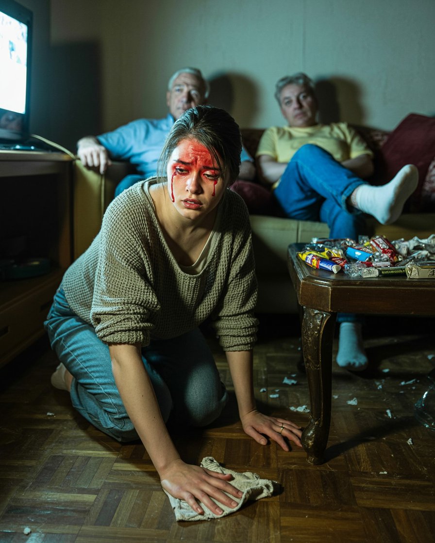 She scrubbed pans until her hands cracked. She cooked for eight people on her own savings. She slept on the sofa while her mother-in-law occupied the marital bed. Each act was justified through a familiar script: duty, family, tradition.
