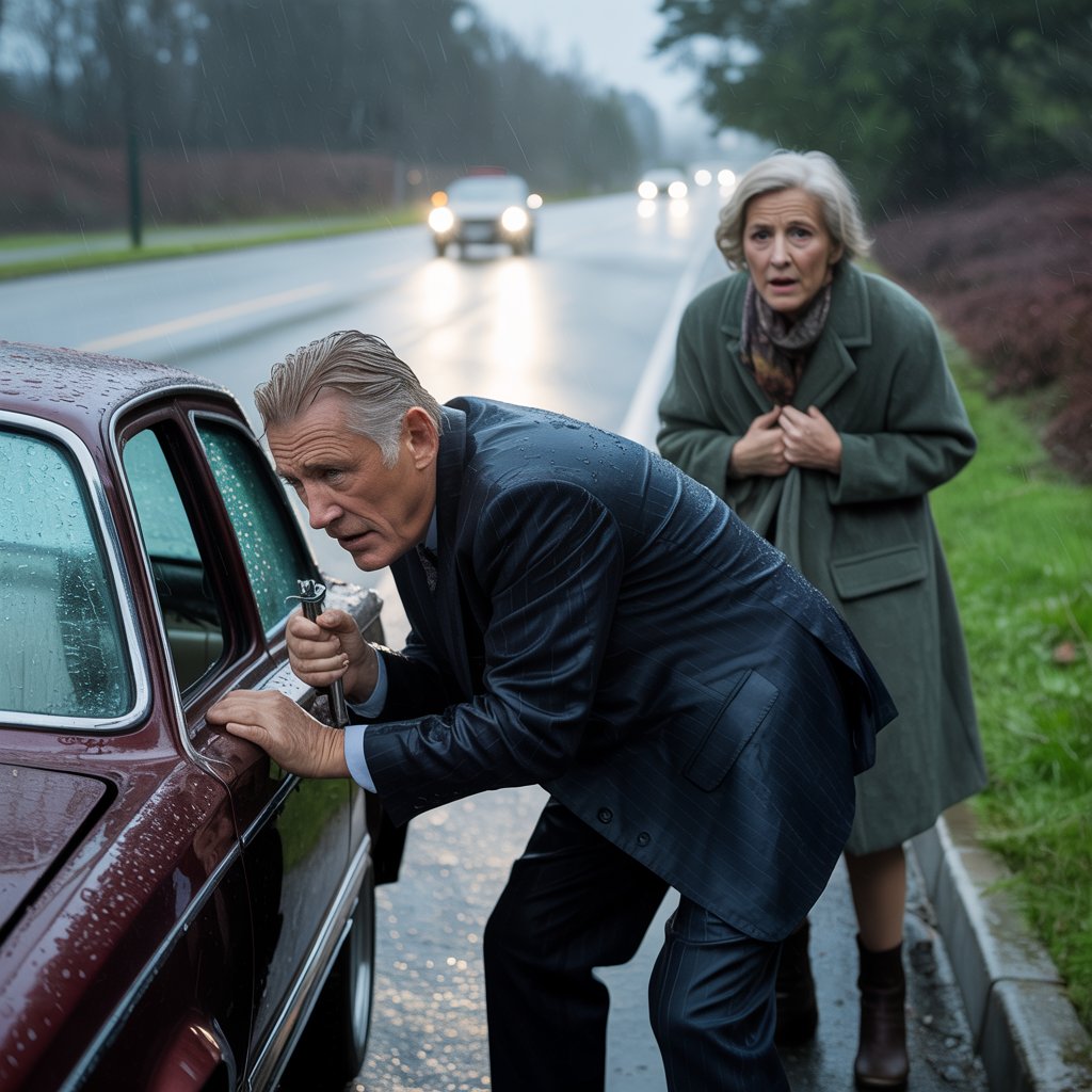 A week later, the unexpected unfolds: the elderly couple appears on national news as Arthur and Martha Sterling, reclusive billionaires and founders of Aero-Dynamics Global. Their roadside breakdown was a deliberate test of society’s kindness, revealing a world where many bypass humanity in favor of haste and self-interest.