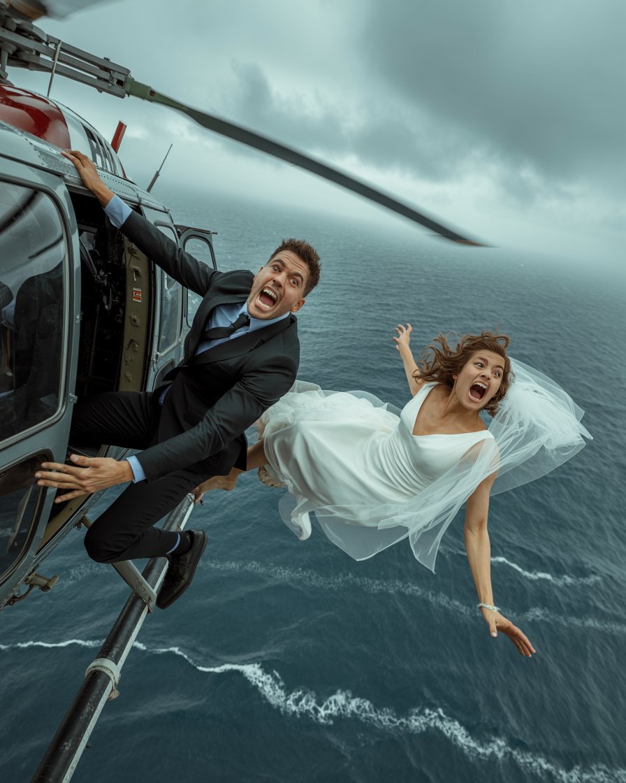 So, when he finally offers a “surprise anniversary trip” to the Keys with a private helicopter tour at sunset—complete with all the narrative trappings of romance—she smiles and accepts.