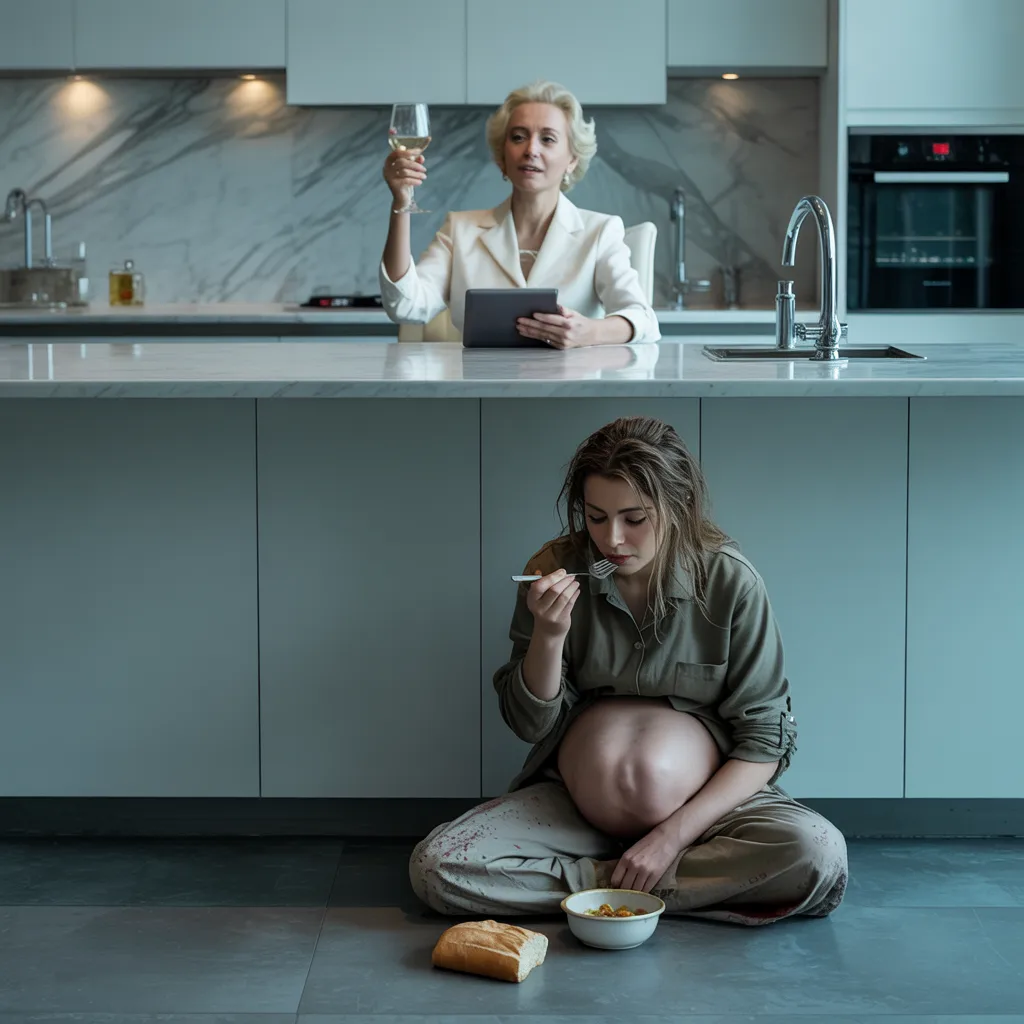 She leaned forward, as if she couldn’t bear to waste any more of her attention on me. She reached for a loaf of artisan bread, tearing off a piece with care, inspecting it, then dropping it dismissively onto the floor. It bounced once and landed near my knee.