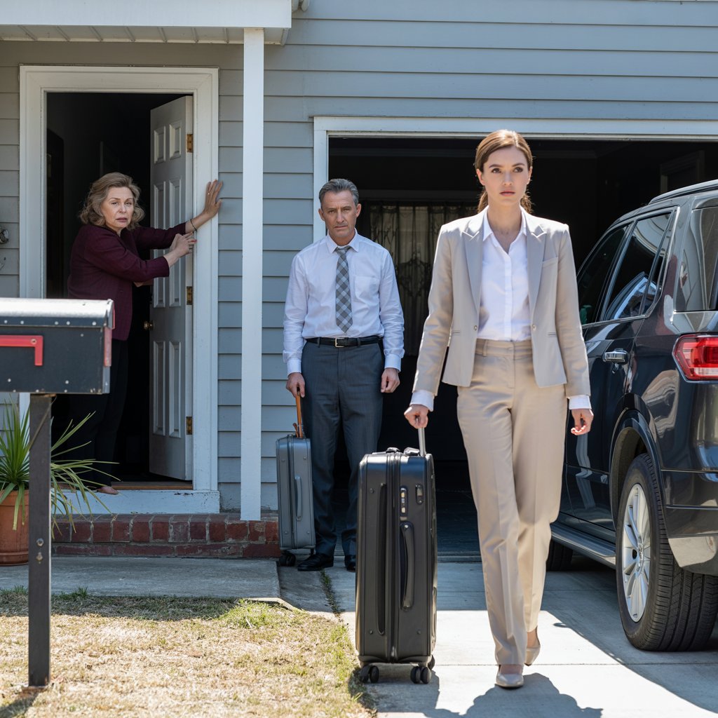 I was tending my roses when Terrence’s SUV pulled into my driveway, urgency in every movement. Terrence looked exhausted, his wife Lennox composed and stylish, two suitcases at her side.