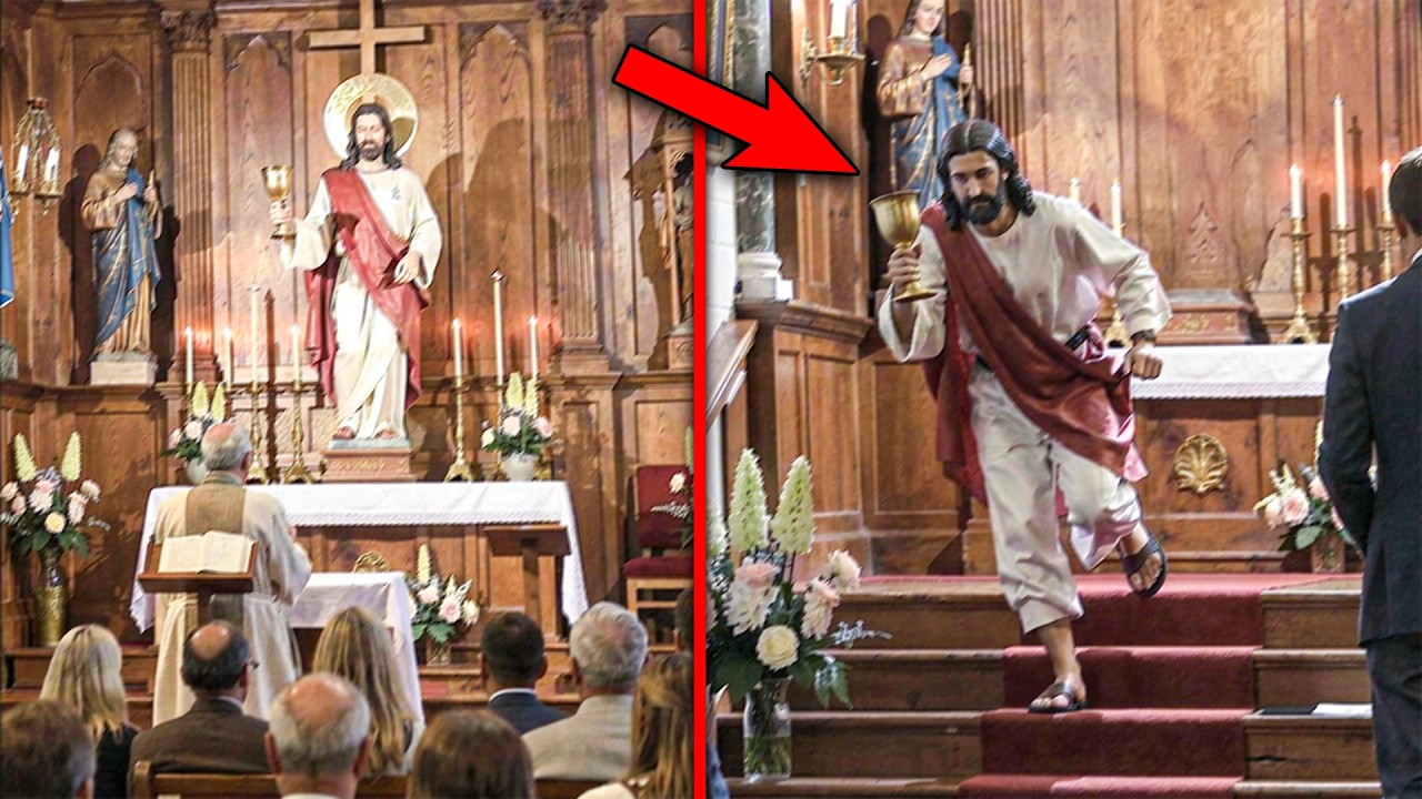 difficult to examine closely. The temple was also very bright inside, which led some people to suggest the whole thing was simply a trick of the light playing on the golden surfaces of the statues. Those are fair points to raise, but here is what keeps this story alive. Nobody has ever been able to watch that footage and say with complete certainty that the statues are not moving. Nobody. Number 20, walking Jesus statue. Rome church. Everything inside the Rome church was completely normal. People were gathered