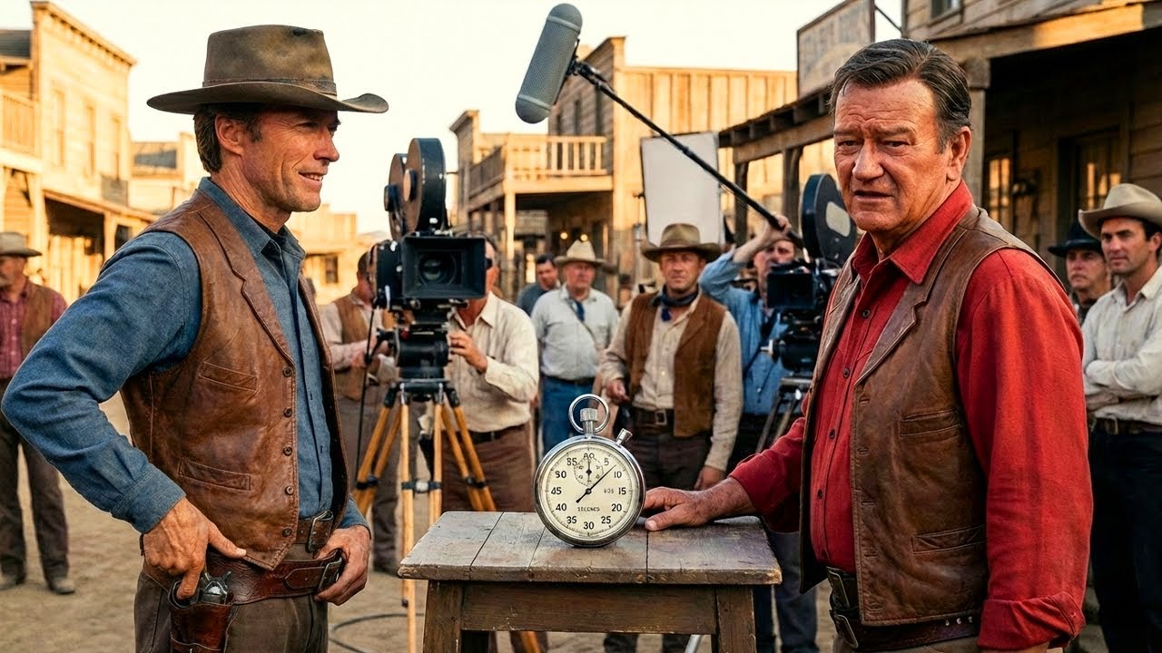 ” Clint stood, adjusted his belt. They positioned themselves facing the camera. Side by side, about 3 ft apart. Two gunslingers from different eras standing on the same soundstage. Needam counted down. 3 2 1 draw. They both drew. Clint was faster. Of course, he was faster. 2 seconds. Smooth as water. Perfect technique. The gun appearing in his hand like magic.
