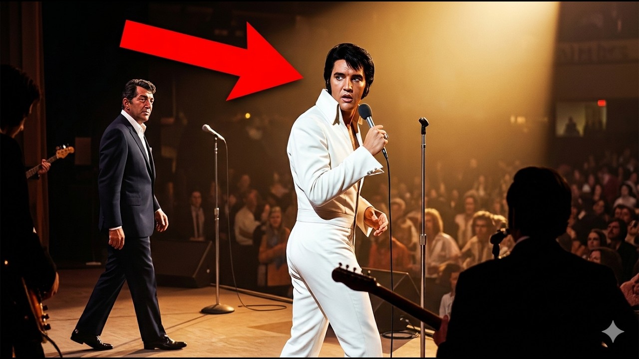there. Mid introduction to the song. Mid verse, mid- performance, mid everything. just walked onto Elvis Presley’s stage uninvited, unannounced, unexpected, unauthorized. The audience saw Dean first, saw him before Elvis did, started reacting, started gasping, started pointing, started whispering to each other, started understanding something significant was happening, started paying attention differently, started watching Dean instead of Elvis, started feeling the shift. the change, the moment becoming something else. Dean