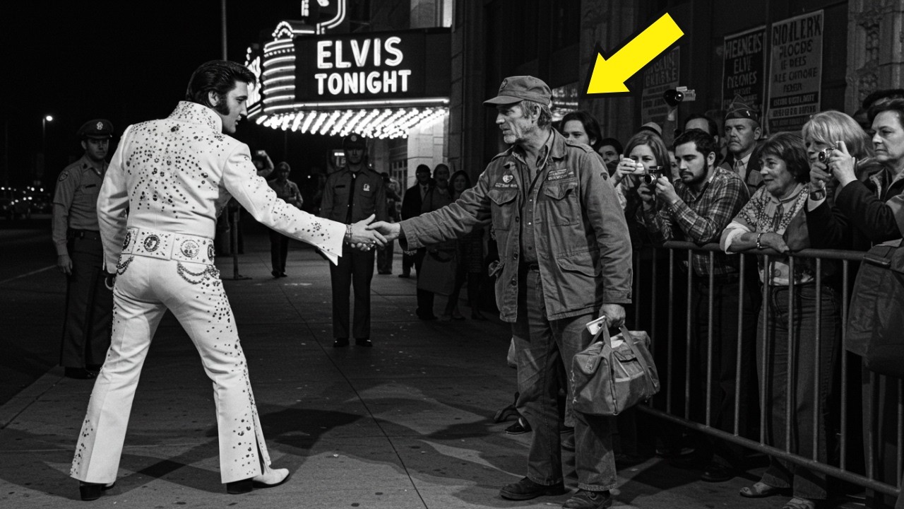 together, eyes fixed on the man as if trying to place him. The bodyguard at his shoulder waited for a signal. A woman in the small crowd called out, “Elvis, we’re late. The stage clock was ticking, but Elvis didn’t move toward the door.” Some say he saw himself in that man the army days. The barracks nights, the music in his head when there was nothing else. The crowd at the barricade leaned forward, sensing something about to break routine. Elvis nodded once to his bodyguard, then