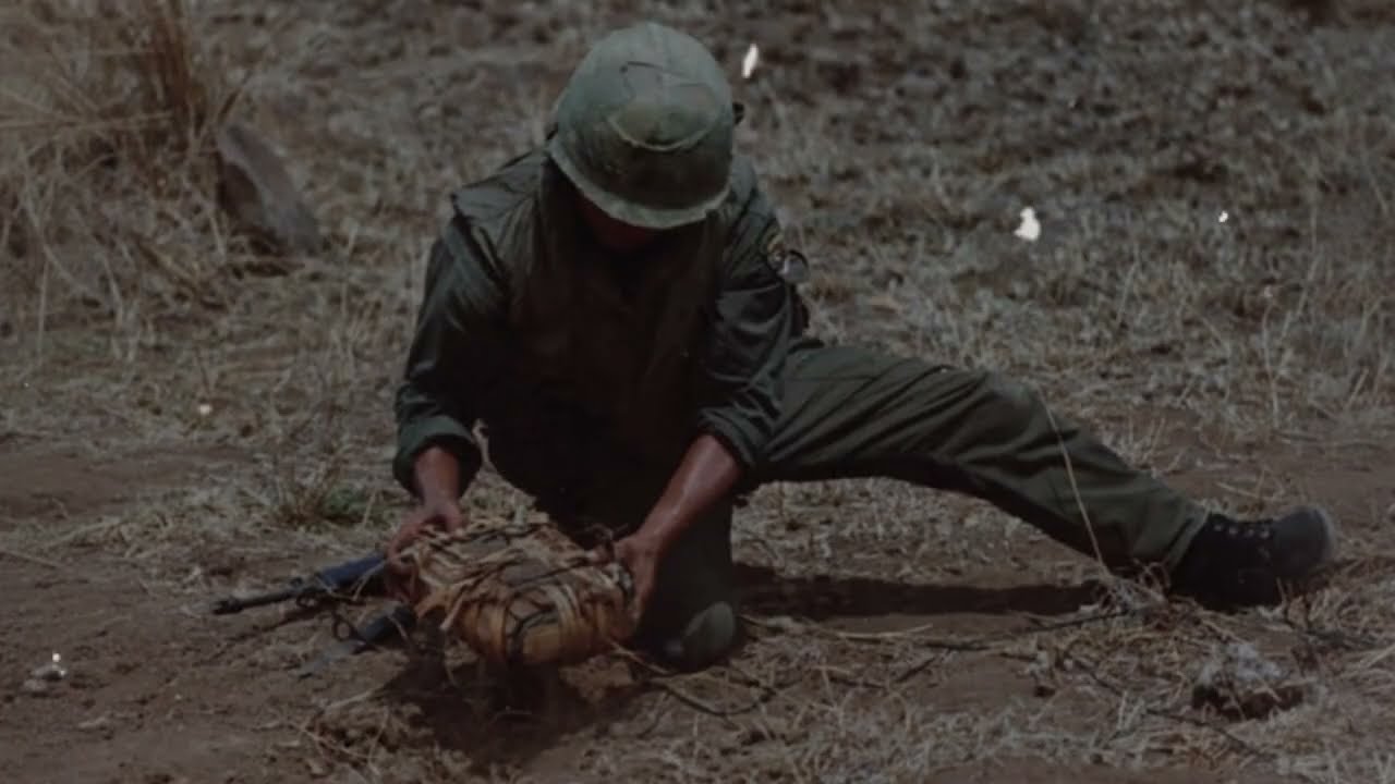 Bamboo whips set to trigger if someone left the trail. Grenade traps buried in obviousl looking concealment spots. And at the far end, a command detonated mine made from three American mortar rounds wired together and buried under the trail itself. The first trap got private first class Tommy Walker from Mississippi.