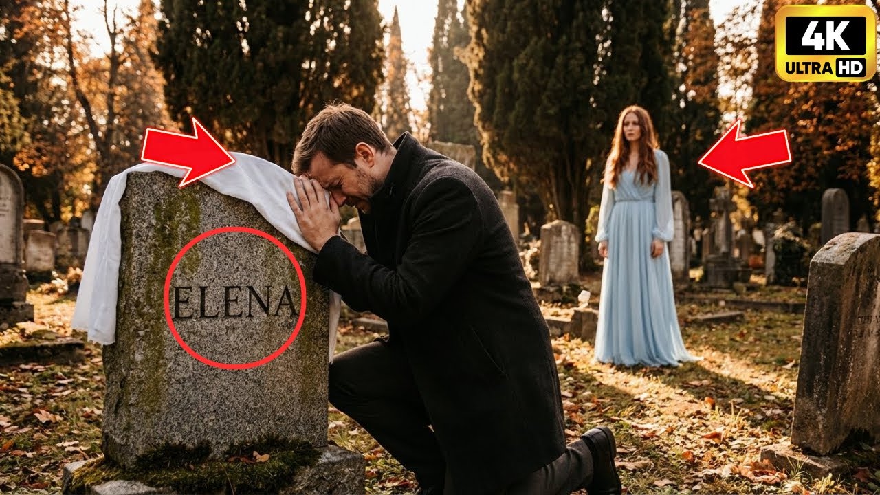 [music] The only piece of her they’d been able to recover. As the priest spoke, Richard noticed a woman standing at a distance from the rest of the mourers. Sunglasses, [music] scarf pulled high, watching. For one insane second, his heart slammed against his ribs. The way she stood, the tilt of her head, “Elena,” he whispered.