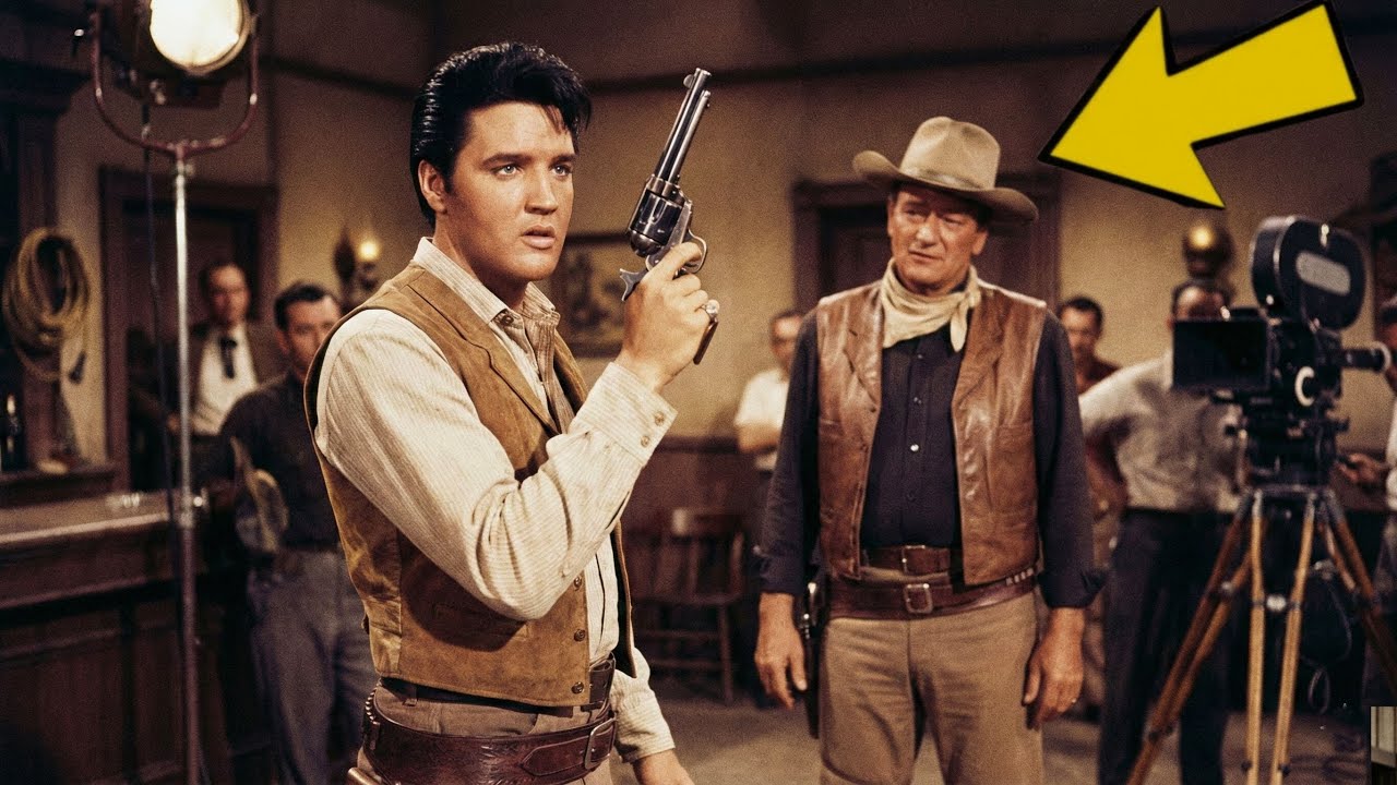 around, draws his gun, fires. Cut. The director nods. Good energy. Let’s go again. They filmed the scene 12 times. Each take the same. Elvis moving, Elvis spinning, Elvis performing. Nobody tells him anything is wrong except one man. John Wayne stands at the edge of the set. 63 years old, 200 films, the biggest western star in Hollywood history. He is here visiting a friend, the producer. Old business. He was not planning to stay, but he cannot look away. He watches Elvis take after take. The